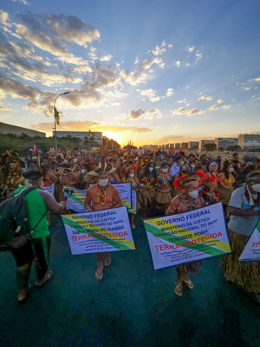 “Estamos realizando la mayor movilización de nuestras vidas en Brasilia, porque es nuestro futuro y el de toda la humanidad lo que está en juego. Hablar de demarcación de tierras indígenas en Brasil es hablar de garantizar el futuro del planeta con soluciones a la crisis climática”, sostiene la indígena Sonia Guajajara, una de las coordinadoras de la Articulación de los Pueblos Indígenas de Brasil (APIB).