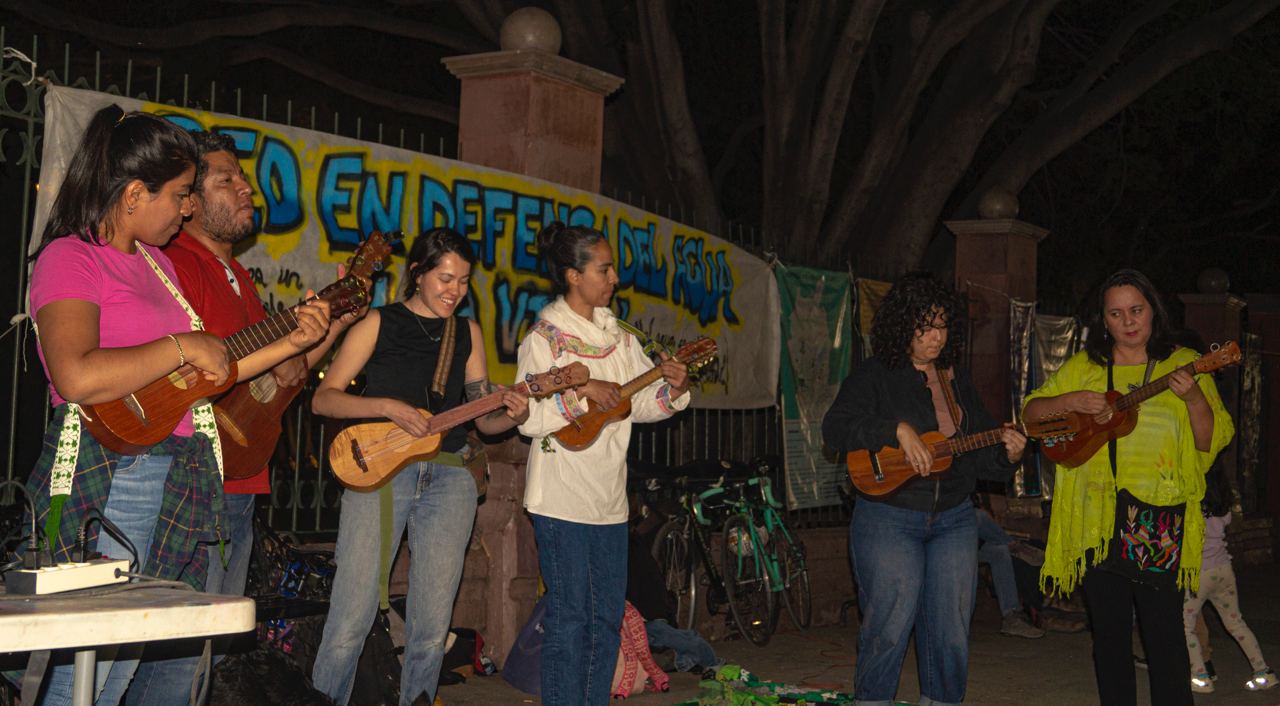 La música también es parte importante, se presentaron dos agrupaciones, una de ellas fue el colectivo Cosechando Tradición quienes, al Son Jarocho, conectaron con las personas presentes. Dentro de las canciones que tocaron, se pudo escuchar al ritmo de la Bamba, que hay que defender el agua y la vida, que el político de turno debe ya irse.