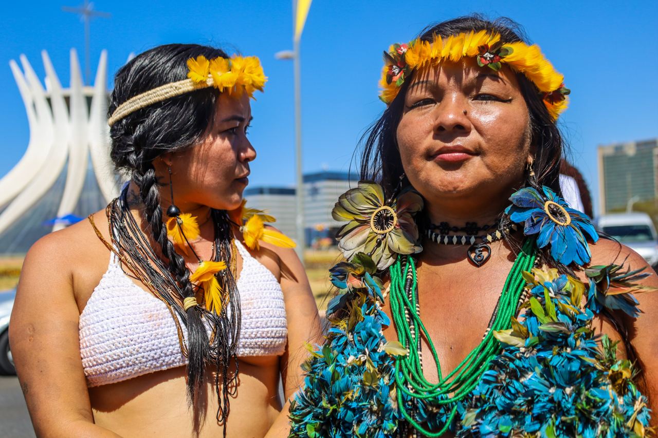 Durante la marcha de las mujeres, la argumentación contra el “Marco Temporal” es clara: Brasil es territorio indígena ancestral. Y punto. Según datos del Censo Demográfico realizado por el Instituto Brasileño de Geografía y Estadística en 2010, la población indígena en el país era de 896 mil 900 indígenas, distribuidos en 305 grupos étnicos. Hoy, aseguran algunas mujeres, ya han llegado al millón 600 mil. Son estas personas, que han sobrevivido a exterminios masivos, quienes están enfrentando la deforestación del agronegocio y la minería en la Amazonía, que amenaza el futuro del mundo entero.