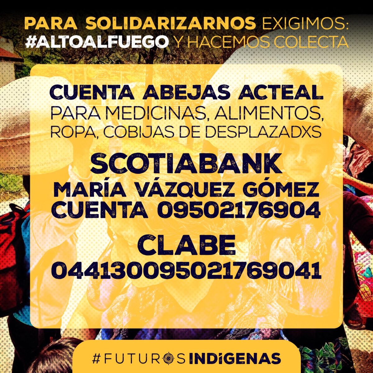 Por último, las organizaciones señalan que cuentan con información de actos de intimidación, vigilancia y amenazas del grupo criminal “a personas que no se han quedado calladas ante esta situación, como lo son las y los integrantes de la Organización de La Sociedad Civil de Las Abejas de Acteal, así como las servidoras y servidores de la Parroquia de Santa Catarina Pantelhó, que abarca comunidades de Pantelhó, Simojovel y Chenalhó, por lo que tememos por su vida, integridad y seguridad personal. Hacemos responsable al Estado mexicano de cualquier agresión hacia ellas y ellos”.