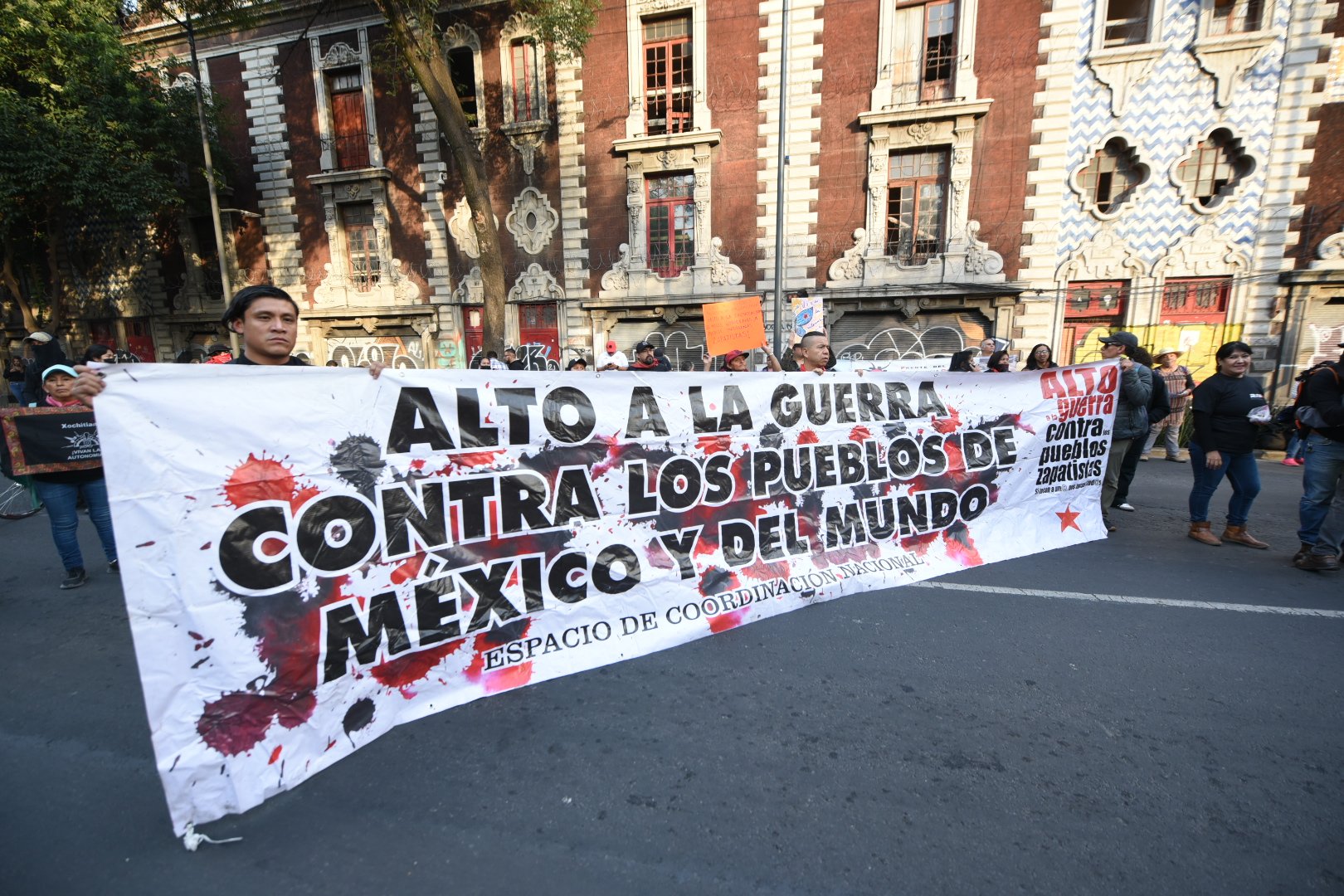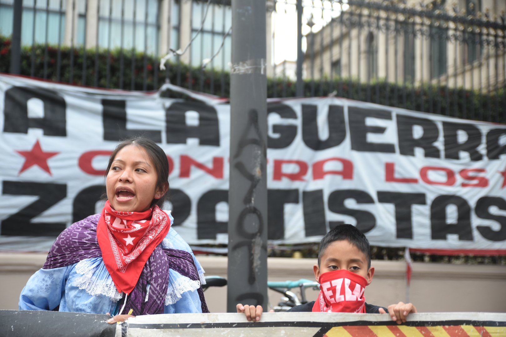 “Estamos alzando la voz e invitándole al pueblo de México, al mundo entero a sumarse a esta lucha de exigencia de ¡ya basta con esta guerra!, ya no vamos a permitir que nos sigan matando y que nos sigan desplazando”, dijo la Otomí.