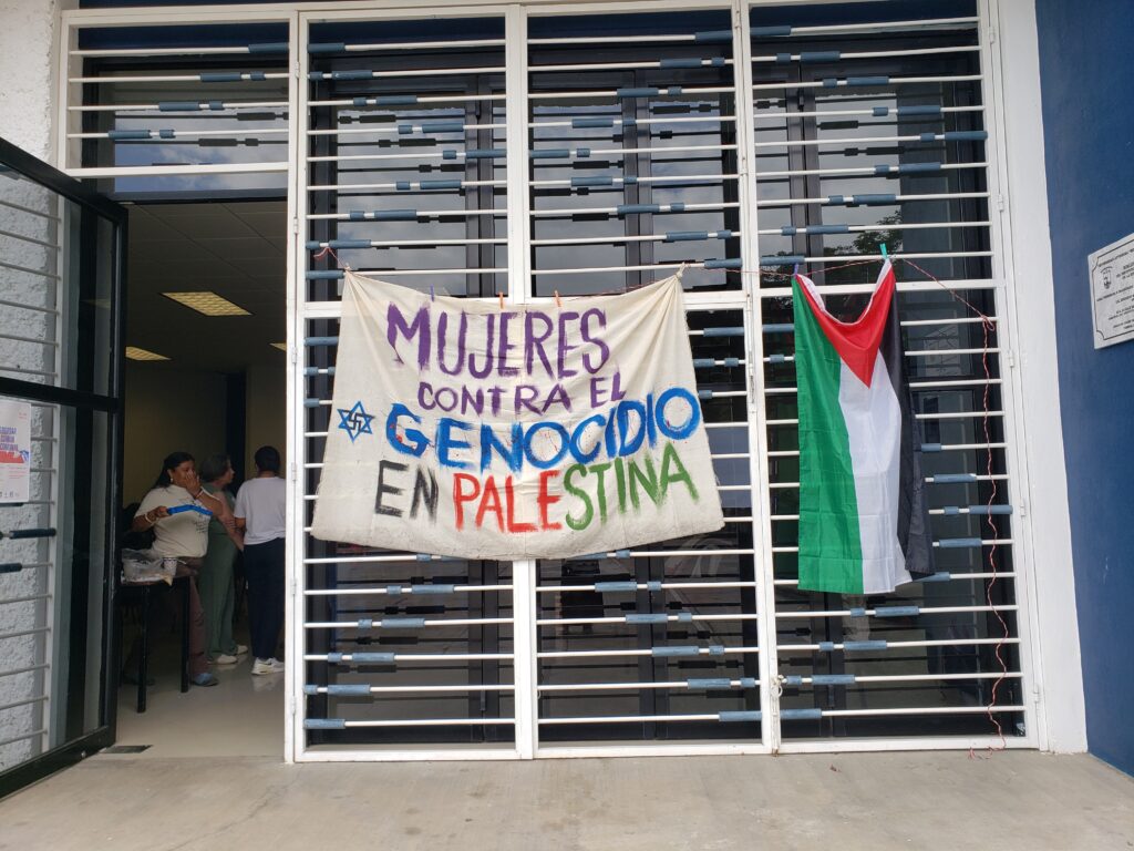 Las más de 80 mujeres que respondieron a este llamado fueron recibidas por el mensaje: “Mujeres contra el genocidio en Palestina”, colgado en la entrada de la sede. “Significa que nos estamos buscando, que tenemos la necesidad de encontrarnos” mencionó durante el evento Mariana Favela, una de las 8 organizadoras.