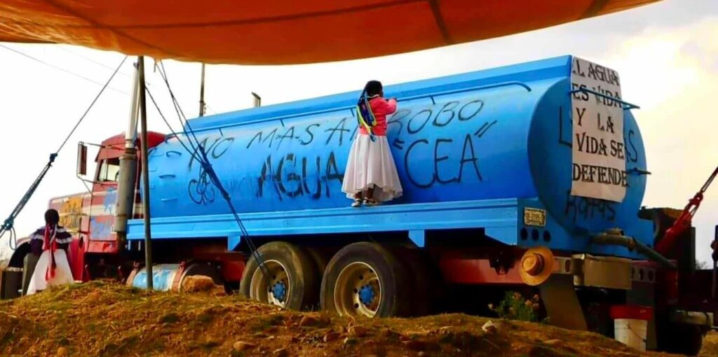 Sara quien ha habitado toda su vida en Mexquititlán, en los últimos años ha atestiguado que la Comisión Nacional del Agua (CONAGUA) cuenta con comisiones estatales que en lugar de hacer una buena gestión del vital líquido, lo privatizan. En Querétaro, esta instancia se haya coludida con operadores privados como inmobiliarias, constructoras y agroindustriales que “están intensificando la escasez de agua a través del saqueo que se realiza con pipas de agua, mediante tuberías conectadas a los pozos de las comunidades”, explicó Sara.