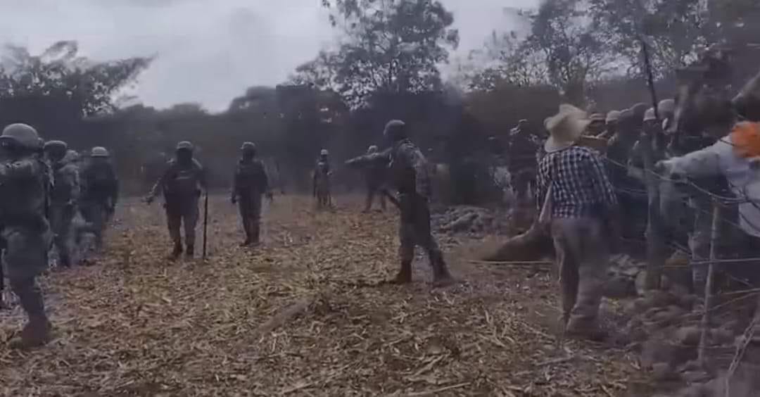 Mediante videos que circulan en redes sociales se puede observar el ingreso violento de los militares y GN pese al intento de diálogo por parte de los pobladores.