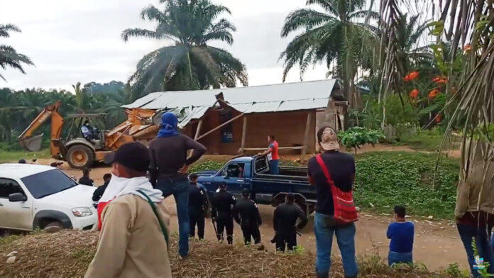 En portada: Hombres vestidos de civil utilizaron maquinaria pesada para destruir viviendas de la comunidad Chinebal. Imagen por Prensa Comunitaria.