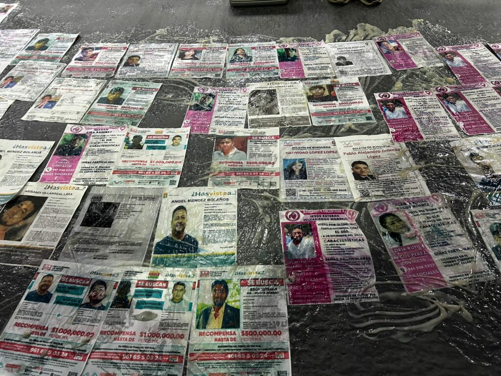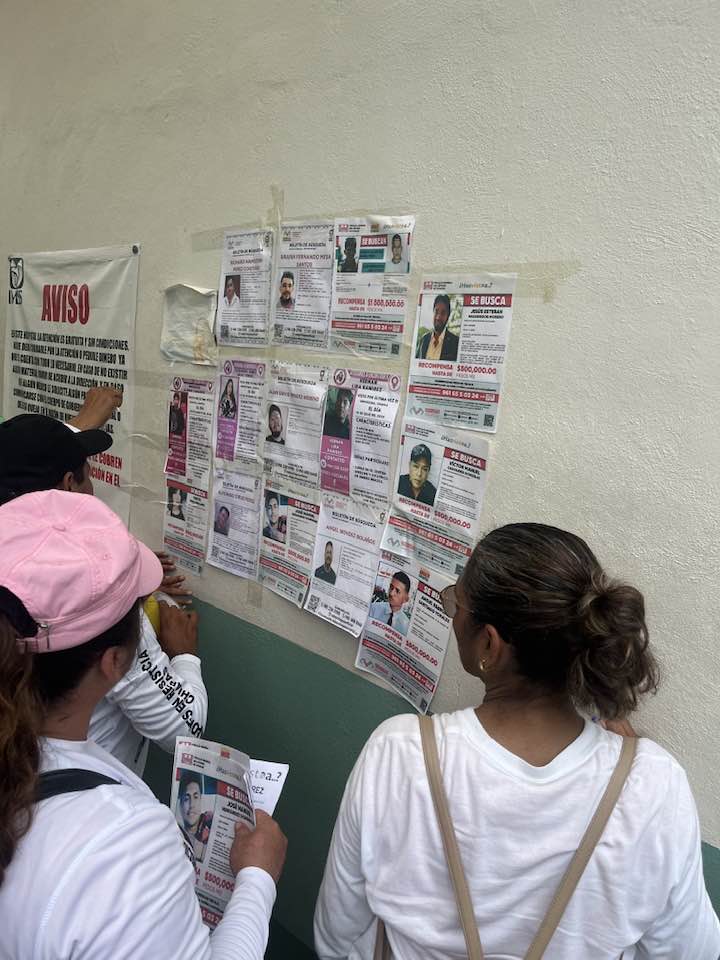 “Nosotras imprimimos las fichas a color y la fiscalía lleva copias en blanco y negro. No se puede identificar a un desaparecido con una imagen en blanco y negro. La fiscalía no lleva ni cinta adhesiva para pegar fichas, siempre nos la piden prestada. Sabemos que hay recursos destinados para las búsquedas, pero nosotras nunca lo hemos visto”, dijo.