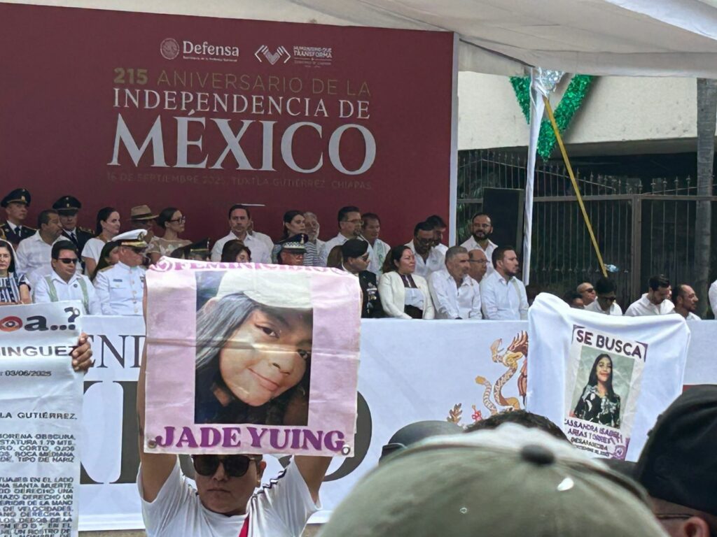 En portada: Integrantes de Madres en Resistencia protestaron durante el desfile conmemorativo por la Independencia de México, donde interpelaron al gobernador y funcionarios encargados de la seguridad en Chiapas. Foto: Jeny Pascacio