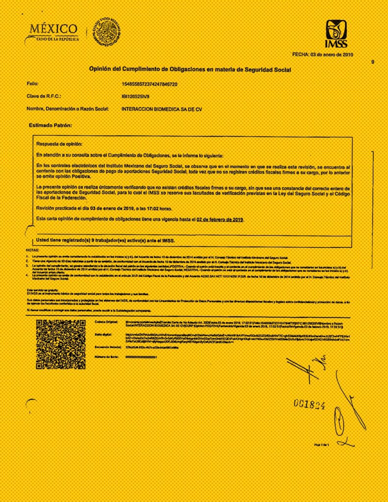 En el caso de Interacción Biomédica, la facturera mexiquense que firmó contratos con el IMSS y el ISSSTE para proveer material de curación, insumos y equipo médico, según la constancia de seguridad social resultó tener apenas nueve trabajadores.