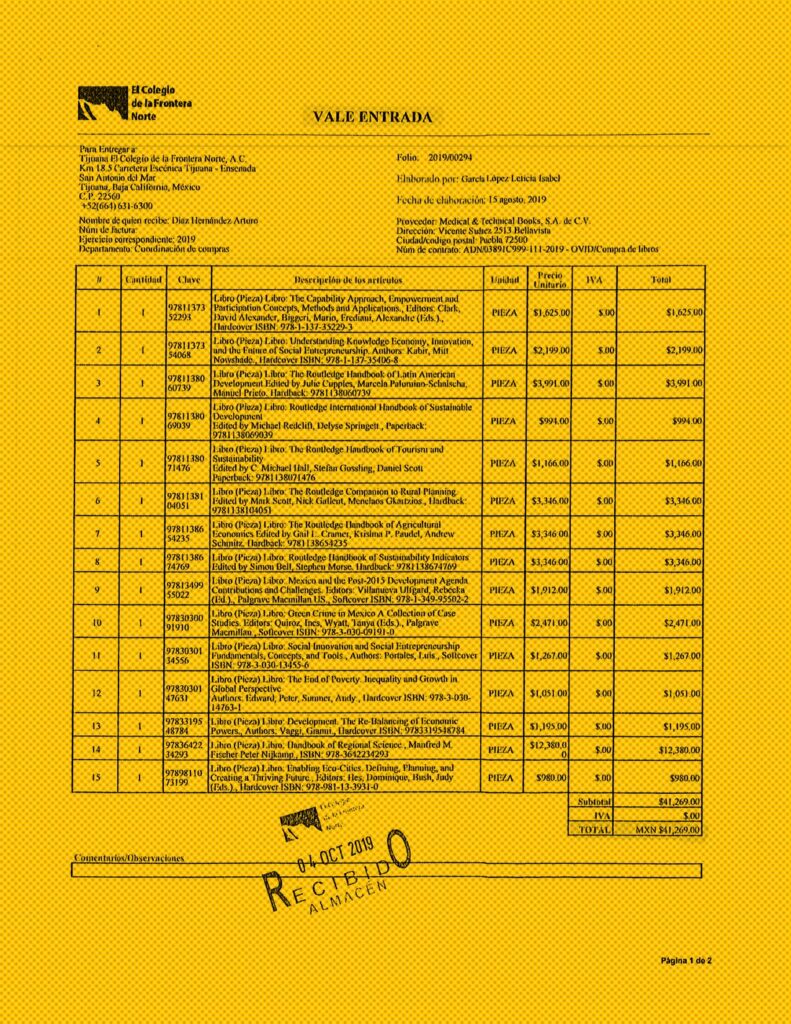 Por ejemplo, para demostrar la adquisición de libros y revistas especializados con Medical & Technical Books, una EFOS de Puebla, las universidades de Guanajuato y Autónoma de Yucatán enviaron fotos de los ejemplares, mientras que las universidades Veracruzana y Autónoma de Ciudad Juárez y El Colegio de la Frontera Norte proporcionaron únicamente listas con los títulos.