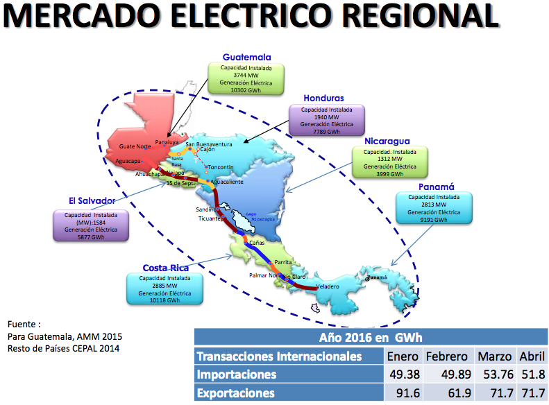 En el mismo Informe Estadístico se había anunciado que desde el 2016 “Guatemala exporta energía eléctrica al Mercado Eléctrico Regional (MER) y a México”, y que tan solo en este año se exportó alrededor del 11% de la producción nacional. “El 98% de las exportaciones fueron hacia el MER y se observaron las primeras ofertas de exportación de energía hacia México por parte de agentes guatemaltecos”.