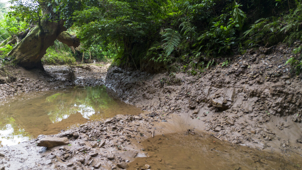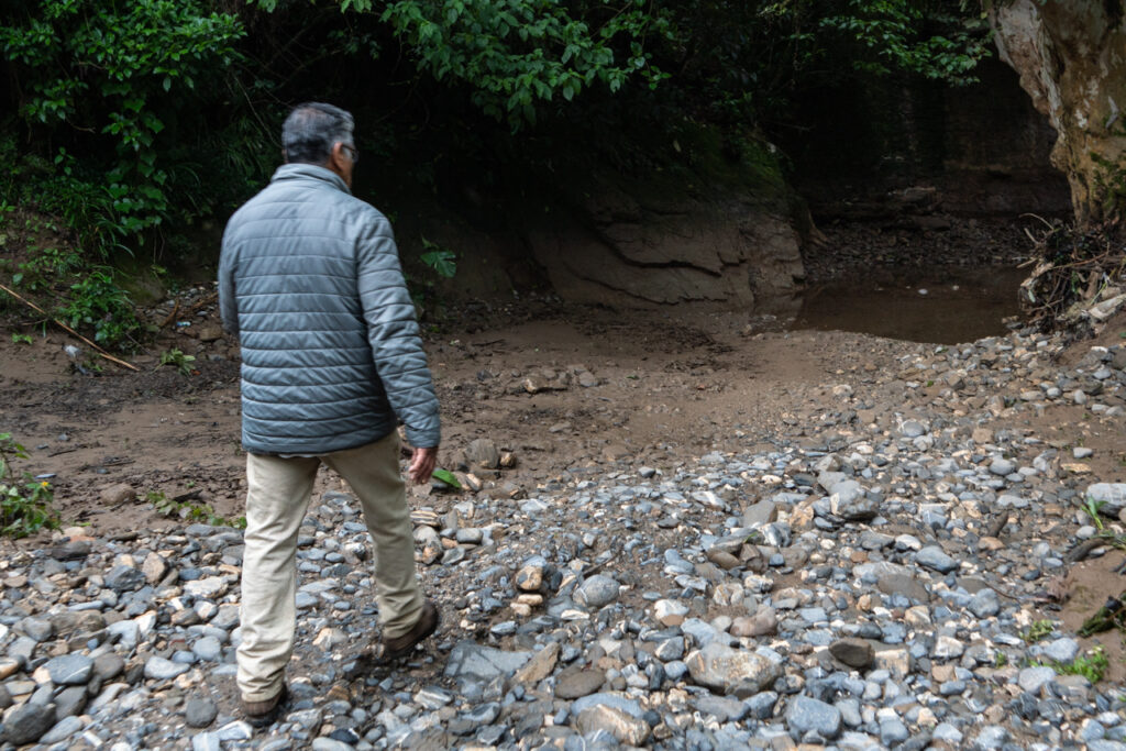 Justo donde señala el profesor, como por arte de magia, el agua deja de correr, se pierde entre las rocas, “es posible que, por el movimiento de las rocas y la arena, destaparon un sótano, ahí es hacia donde se está yendo lo que todavía queda del agua del río”, complementa el profesor.