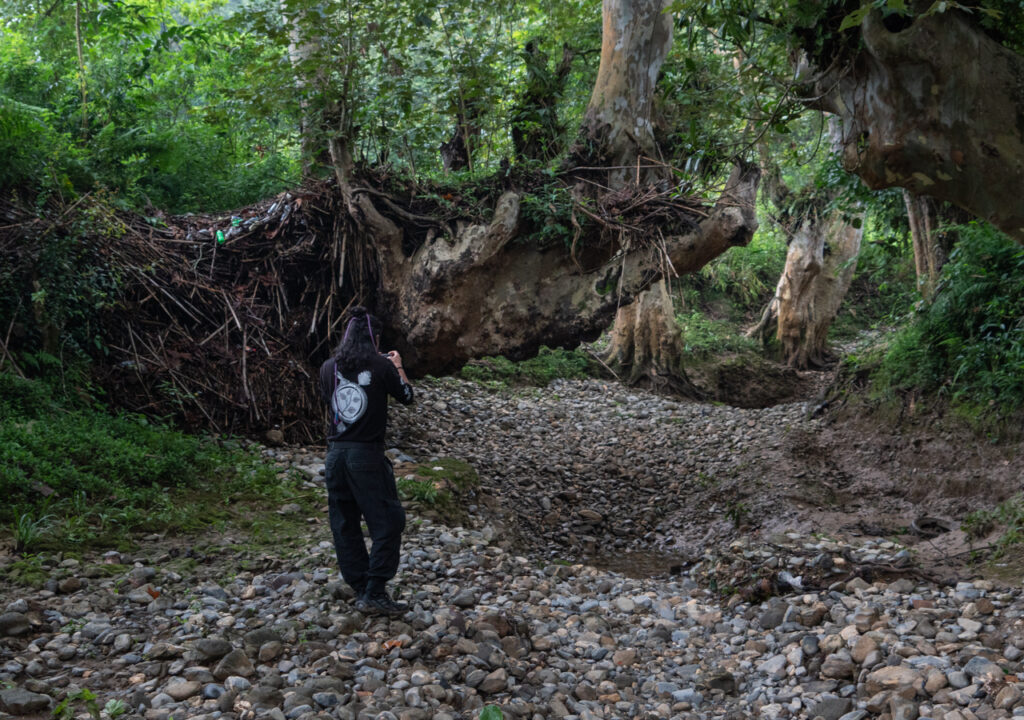 Al caminar la senda del río, en el trecho donde ha desaparecido el paso del agua, se puede notar que el suelo está compactado, “es por la introducción de la maquinaria pesada”, agrega el profesor Betanzos. Conforme avanzamos, también se puede apreciar, no solo las raíces desnudas de los árboles frondosos, sino que también la “desaparición de diversas plantas que crecían a orillas del río”, señala el guía de los observadores de la Misión.