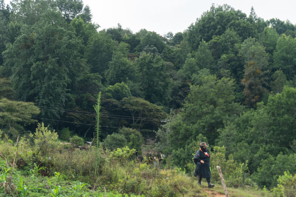 En los alrededores del centro de la población, se dibujan accidentadas montañas cubiertas de árboles verdosos y largos tramos de tierra ocupada por milpa, una de las principales siembras en la comunidad que, junto a los cafetales y las cajas de avispas productoras de miel, sirven de sustento para varias familias de la comunidad, de manera especial para aquellas que sostienen presas y presos políticos, desplegando así una economía de resistencia.