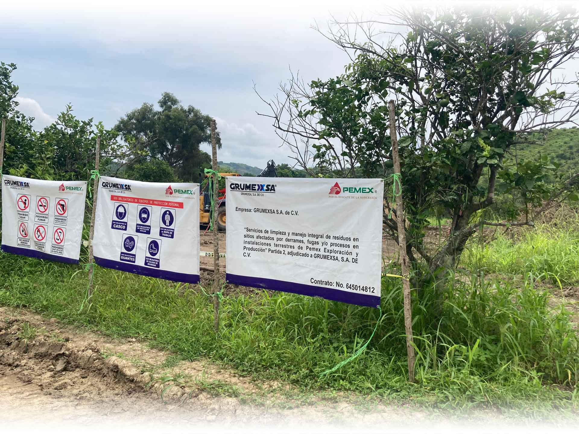 Una cuadrilla de trabajadores de Grumexsa S.A. de C.V. - subcontratada por Pemex mediante el Contrato 645014812, valuado en más de 231 millones de pesos - realizaba la limpieza del derrame mencionado por Doña Gertrudis.