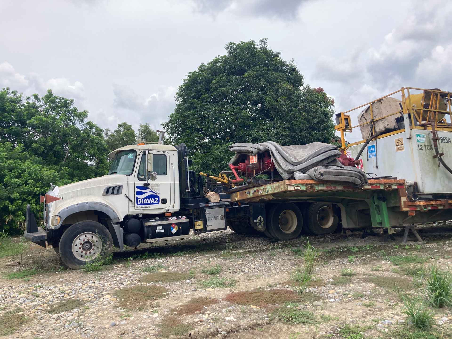 Maquinaria y vehículos propiedad de Diavaz se encuentran en las inmediaciones de un hogar edificado al costado del pozo Miquetla-1. Fotos: Aldo Santiago