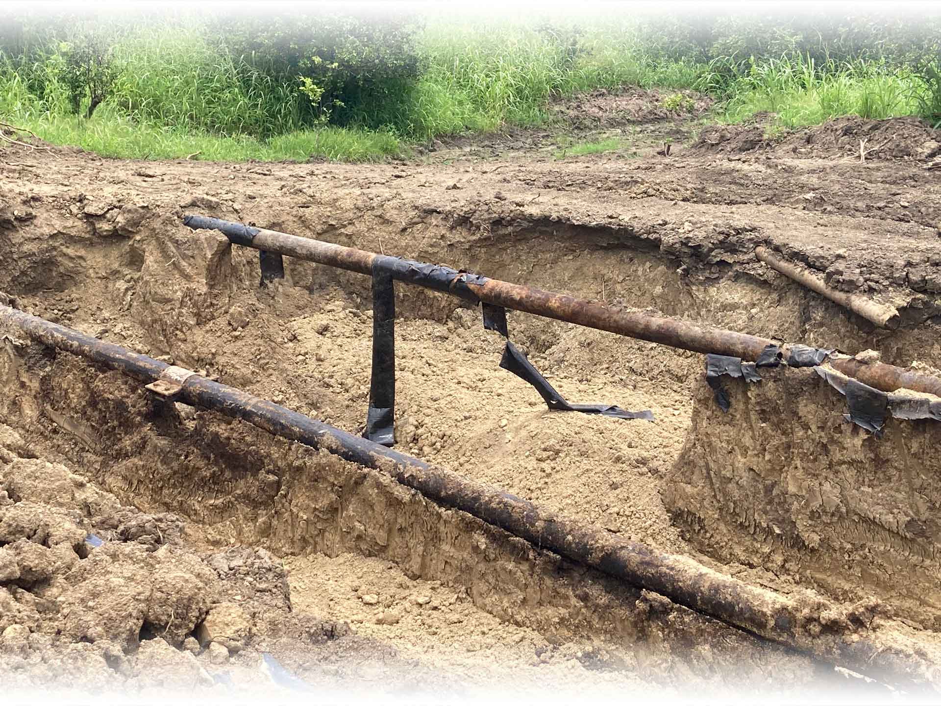 Lo que pudimos constatar en el sitio del derrame, meses después de la ruptura de la línea, es que el tramo del oleoducto en malas condiciones se encontraba operando aún con avanzada corrosión y dos parches provisionales.
