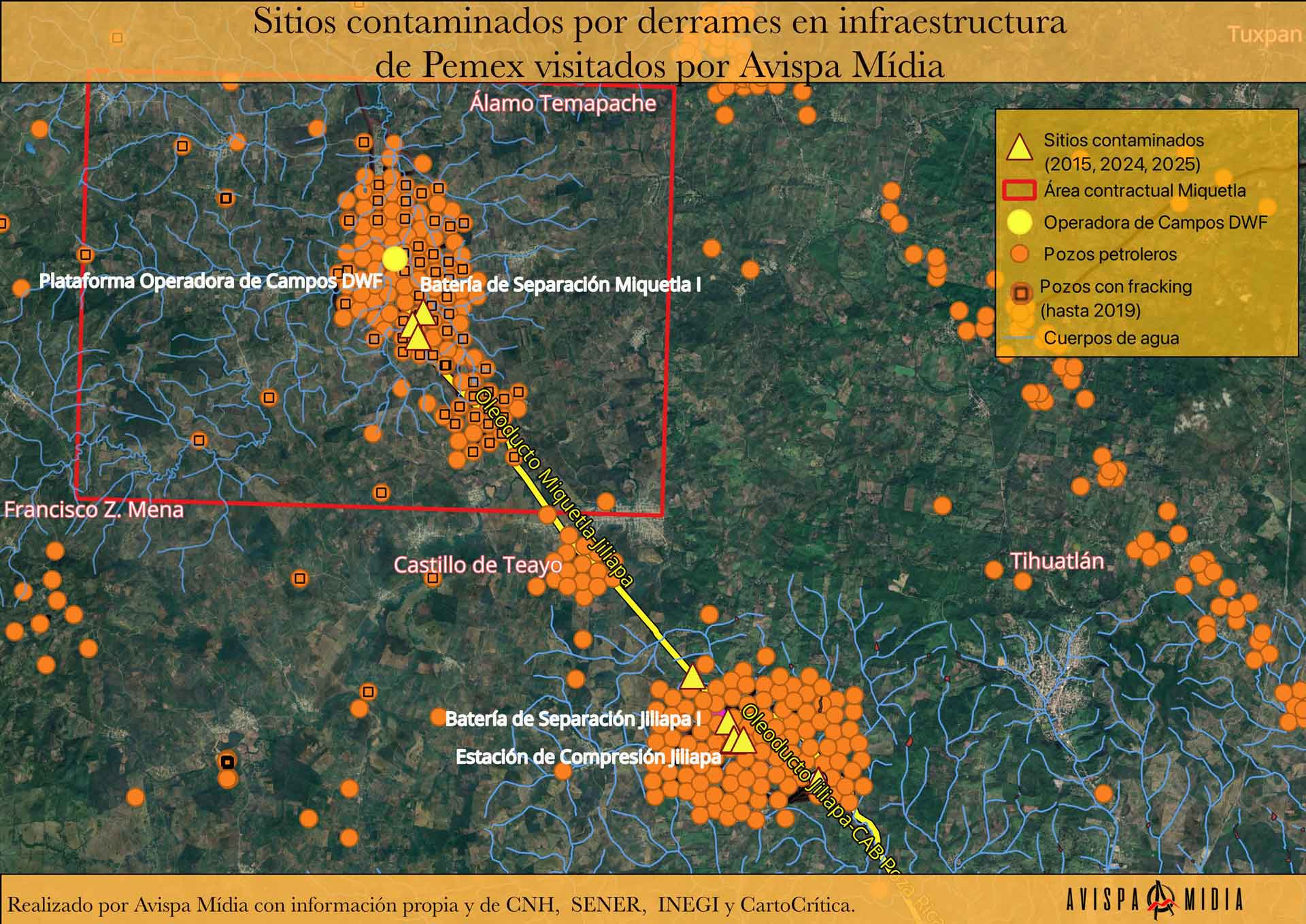 Con la información y georreferencias recabadas por el equipo de Avispa Mídia, en julio de 2025, se confirmó que la contaminación del derrame ocurrido en marzo todavía alcanzaba suelos y cuerpos de agua hasta en un margen de 500 metros de donde se suscitó la ruptura del oleoducto.