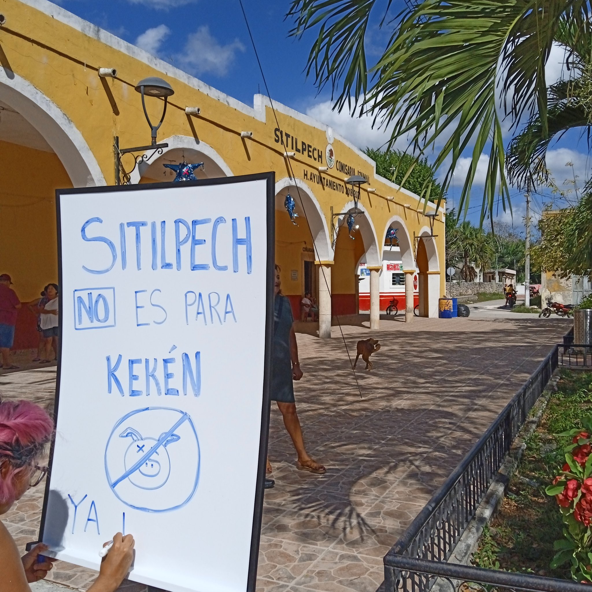 La demanda de amparo desechada por el juez García fue presentada para revocar los permisos de operación de la mega granja Kancabchén II. De acuerdo al colectivo Kanan Derechos Humanos, organización que acompaña la estrategia jurídica de las y los habitantes de Sitilpech, dicha megagranja cría más de 40 mil cerdos y se encuentra actualmente en un proceso de ampliación de sus instalaciones, con lo cual también se prevé un incremento en la contaminación y abuso del agua por parte de dicha industria.