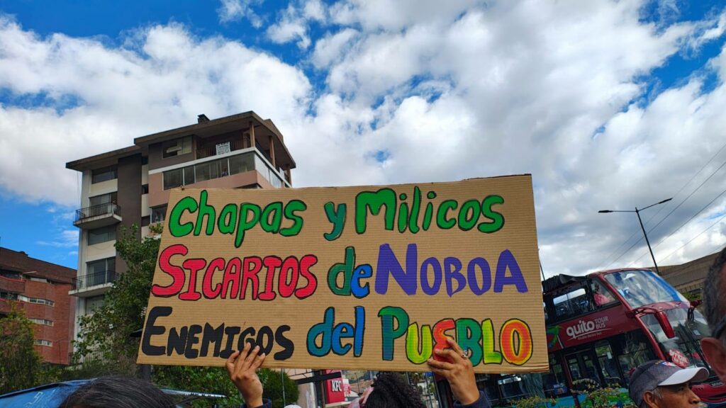 12 días después de que el paro inició, la única respuesta de Noboa ha sido la represión y criminalización de manifestantes. La revista Crisis informó el pasado jueves (2) que desde el inicio del Paro el Gobierno Nacional ha impuesto una serie de medidas en un intento de disuadir la organización popular, tales como el congelamiento de cuentas en un 12,5%, de acuerdo con la Alianza por los Derechos Humanos Ecuador, a varios dirigentes de organizaciones de la sociedad civil como del Movimiento Indígena y del Frente Nacional Anti-minero, entre otras.
