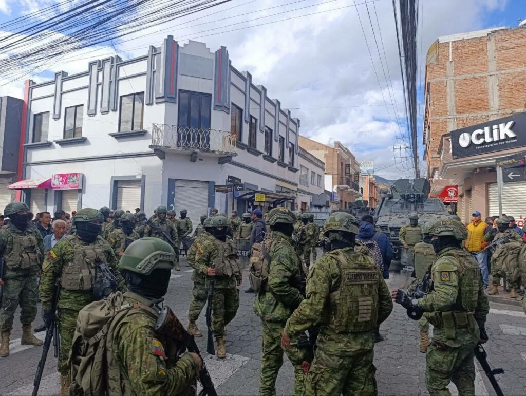 Otra de las medidas ha sido la militarización del territorio nacional para disuadir a las organizaciones movilizadas, específicamente en la región de la Sierra y la ciudad de Latacunga, lugar donde el medio comunitario TV MICC del Movimiento Indígena y Campesino de Cotopaxi (MICC), fue clausurado arbitrariamente por 15 días. La Red de Medios Alternativos (RMA), en solidaridad con TV MICC, calificó el acto de “persecución política contra la comunicación comunitaria y los pueblos que se organizan y resisten”.