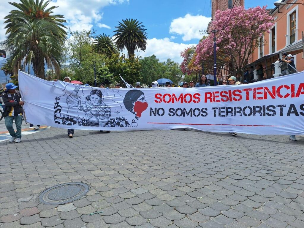 Hasta el momento, bajo la premisa de ¡Somos indígenas, no terroristas!, varias comunidades integrantes de la CONAIE, así como colectividades artísticas y estudiantiles se encuentran movilizadas para exigir el cumplimiento de sus demandas incluyendo la renuncia de Noboa, mientras que la única respuesta por parte del gobierno ecuatoriano sigue siendo el uso de las fuerzas armadas para contener y reprimir a los manifestantes.